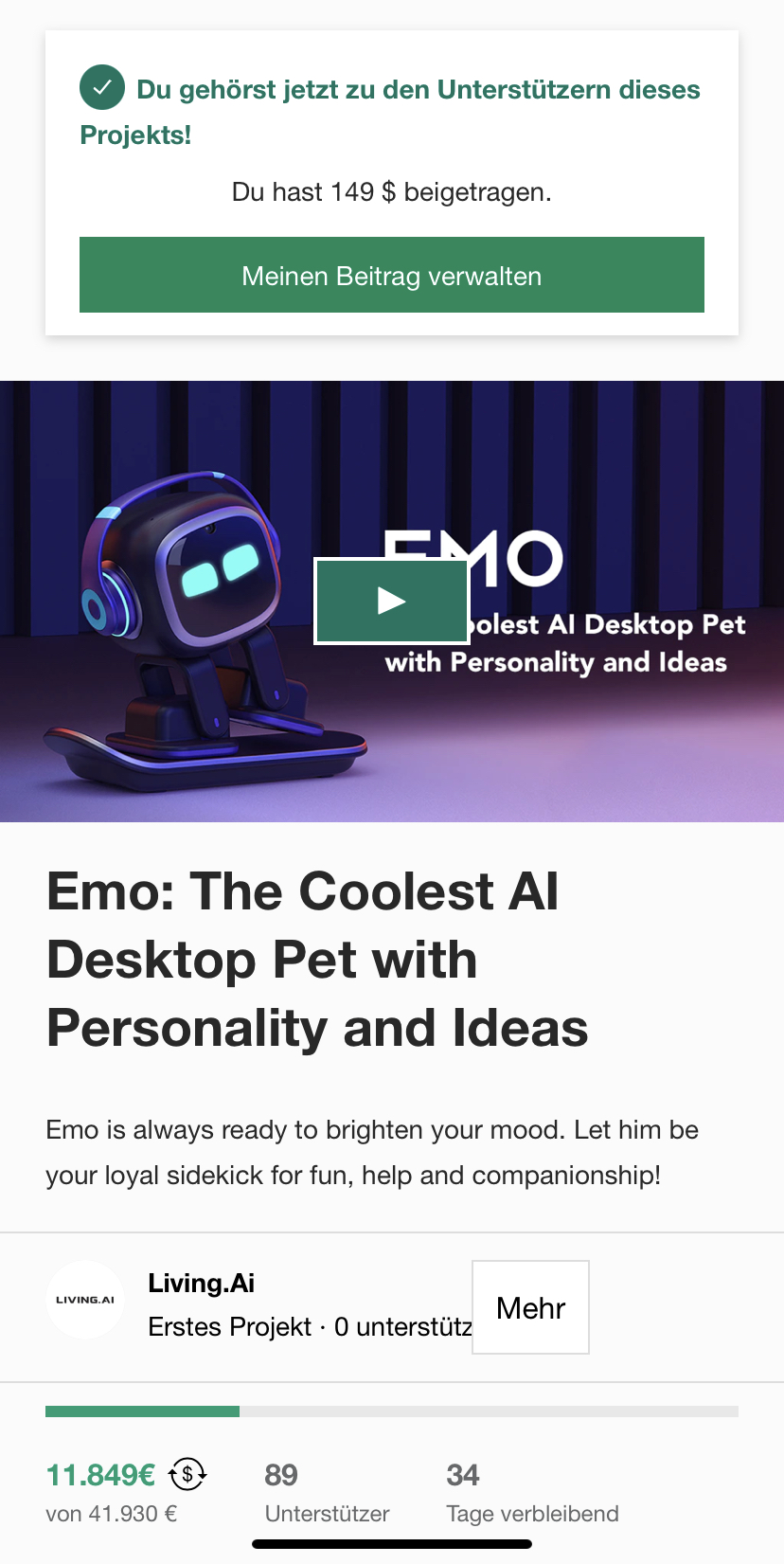 Die Kickstarter Seite von EMO ist derzeit pausiert wegen Rechtsstreitigkeiten mit DLL.